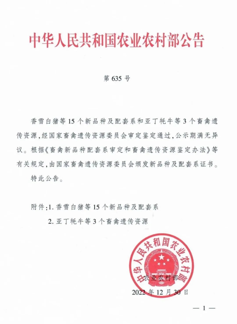 全國(guó)唯一!膳博士·香雪白豬獲2022年度國(guó)家新品種認(rèn)定!